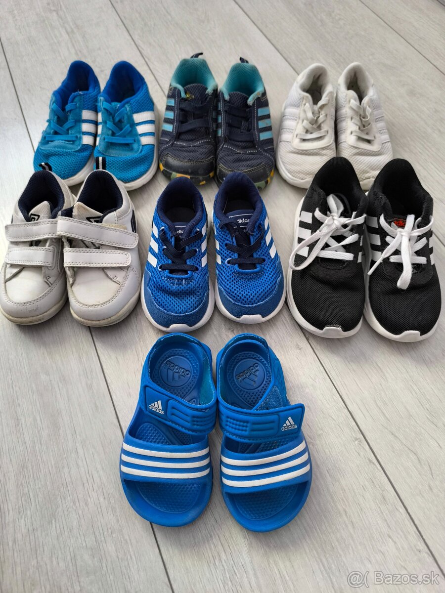 Chlapčenska obuv - [8.2. 2026]Predám obuv pre chlapca od čísla 26 po číslo 28, čižmy do dažďa - veľkosť 26, cena 8€, botasky značky Adidas, veľkosť 28, cena 12€, bodkované botasky - nové nepoužité, veľkosť 27, cena 6€, papučky Spiderman, veľkosť 27, cena 4€, klasické papučky, veľkosť 28, cena 5€, všetky topánky sú ako nové a jed ...