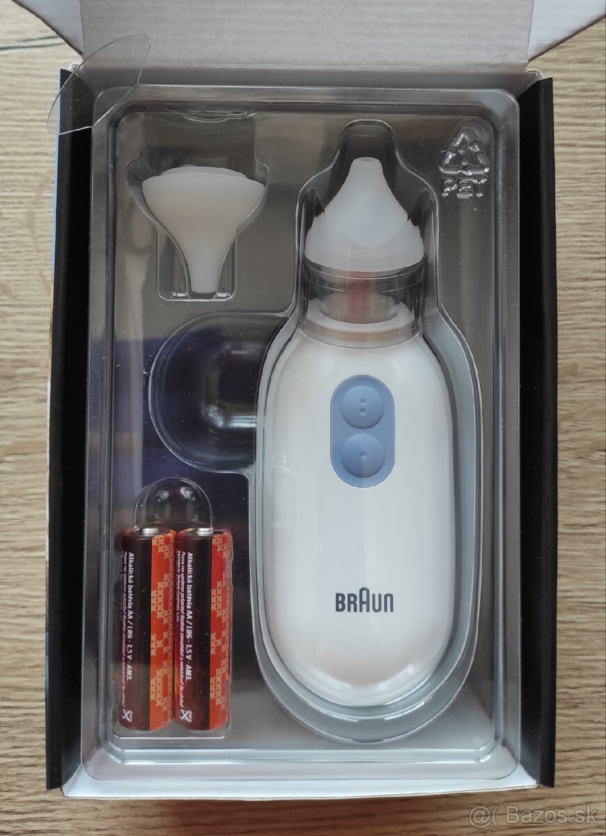 Odsávačka na hlieny Braun - AKO NOVÉ - [5.1. 2026]Nosová odsávačka • pre deti aj dospelých • tiché a pohodlné použitie • 2 šetrné úrovne sania • vhodné aj pre čistenie v umývačke • vhodné pre novorodencov • 2× AA batérie