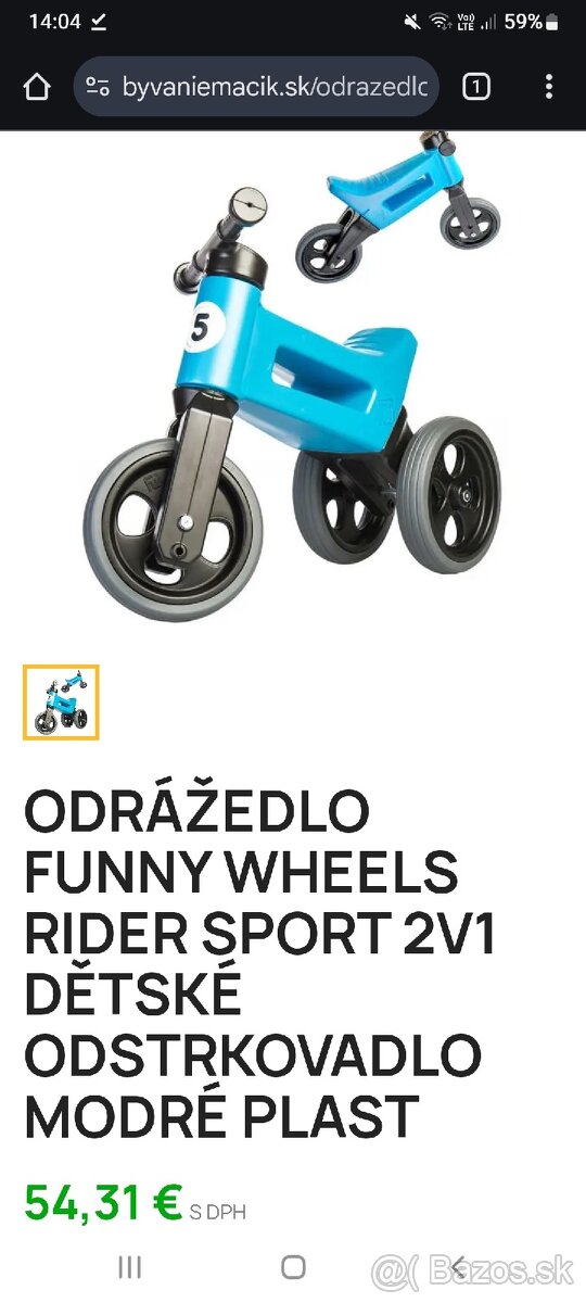 Predám odrazadlo funy whels.2 v 1.odrazadlo alebo trojkolka.v dobrom stave.par škrabancov.plne funkčné. Cena 22e