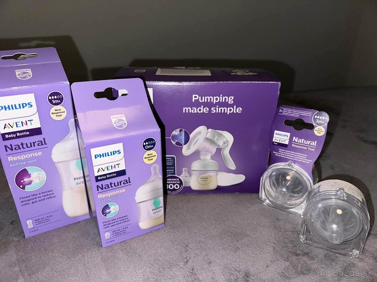 Predám Avent manuálnu odsávačku spolu s Avent fľašami (Avent Natural Response Airfree) a náhradnými cumlikmi na fľašu. Odsávačka bola použitá raz, fľašky iba vyskúšané/nevyhovovali nám. Cena 50€