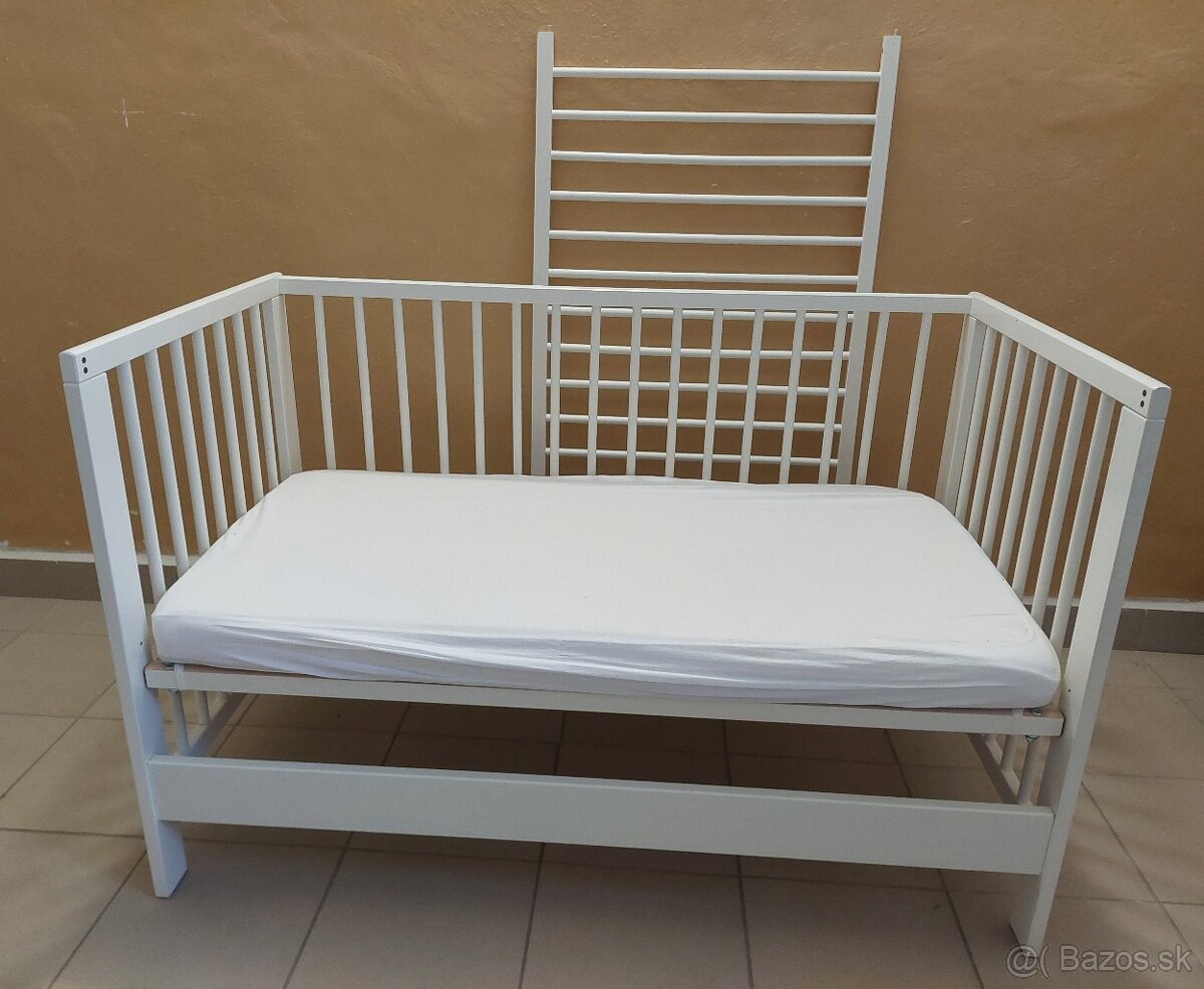Predám detskú postieľku IKEA Gulliver, nastaviteľná výška, 1 strana sa dá odobrať, TOP stav + penový matrac IKEA 120x60x8 cm, tiež TOP stav.