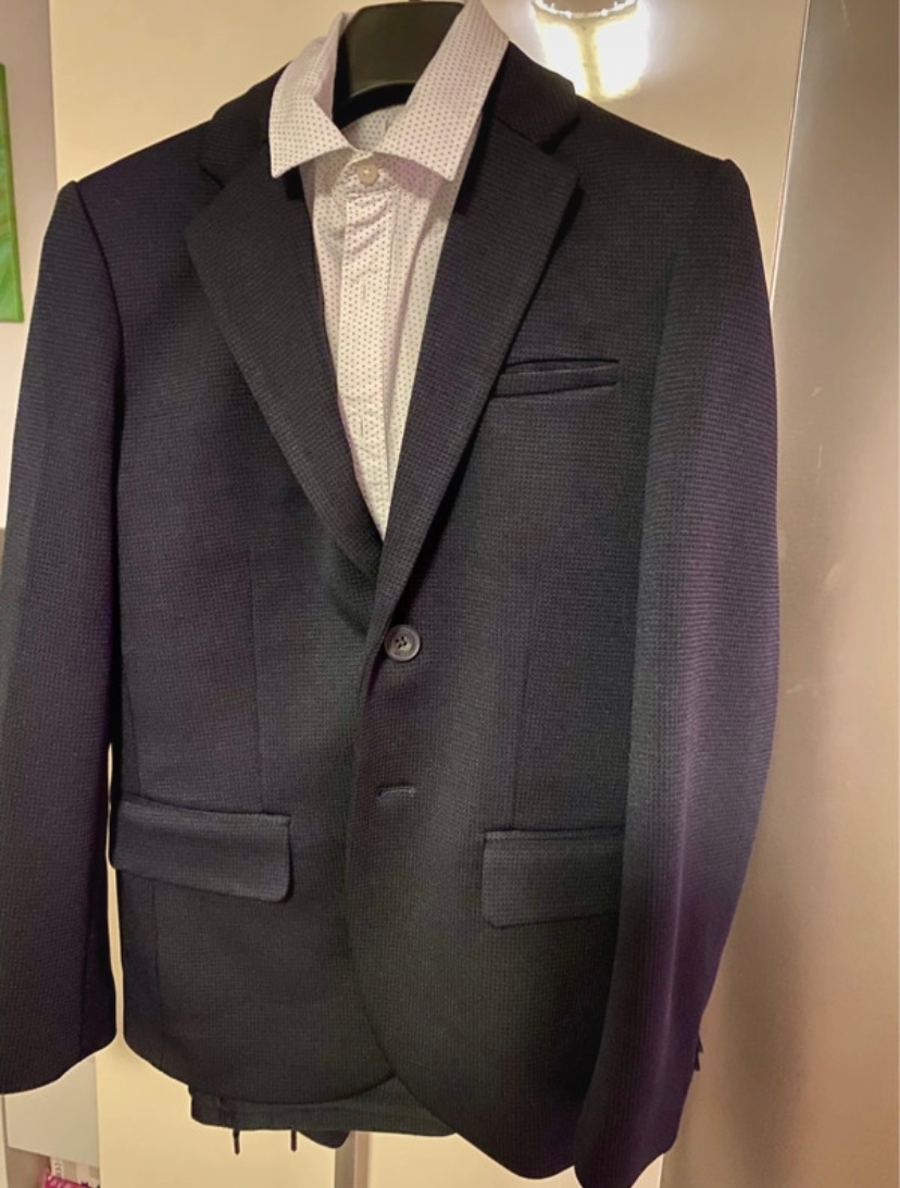 Detský oblek - [8.1. 2026]Predám oblek,oblečený jeden krát. Sako veľ.134.Nohavice veľ. 146.Farba modrá. V prípade záujmu premeriam.