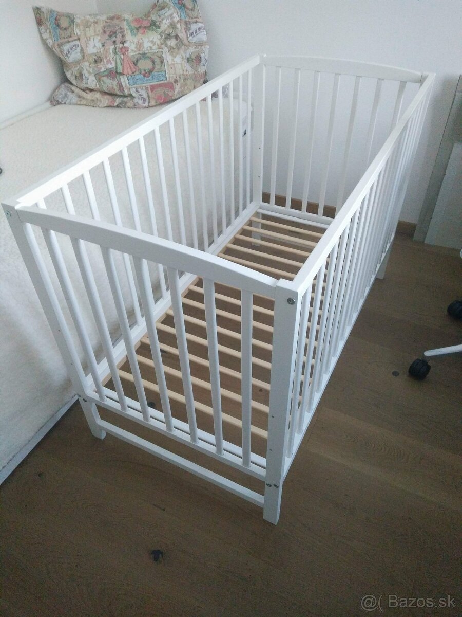 Detská postieľka - [10.2. 2026]Predám detskú postieľku IKEA aj s matracom.Postielka má dve polohy a predný diel sa dá dať úplne dole a použiť ako posteľ pre samostatné deti.