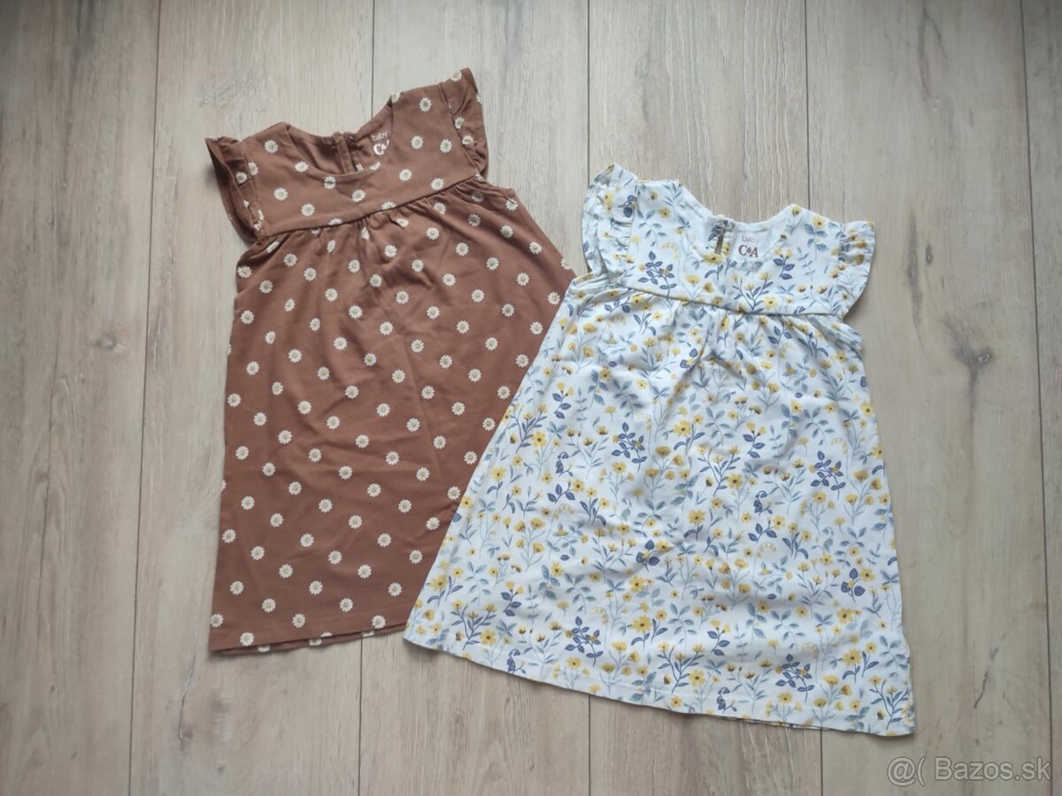 Letné šaty s volánmi C&A, veľkosť 80. Hnedé s kvietkami nové, biele kvetované oblečené pár krát. Cena je za obidva kusy.