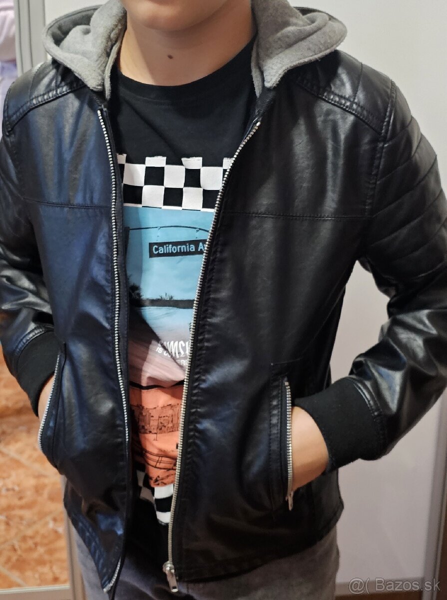 Chlapčenská koženkova bunda s odnímateľným kapucňou, s podsitym vnutrom...je v top stave bez poškodenia..veľkosť 146 na 10 -11 rokov.