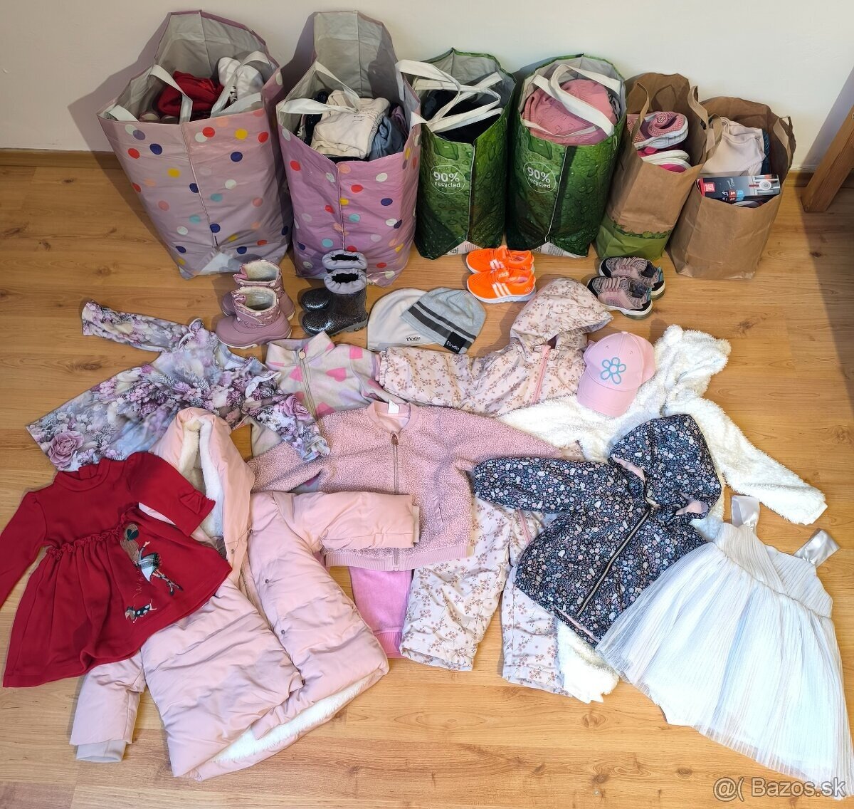 Predám obrovský balík oblečenia, veľkosti od 1 - 3 rokov. Nájdete tam naozaj všetko: body, legíny, nohavice, tričká, šaty, mikiny, bundy, zimná kombinéza, čiapky, snehule 22, tenisky 22, gumáky,... Veci sú niektoré ako nové, väčšina vo veľmi dobrom nosenom stave, ale nájdu sa aj veci na donosenie.