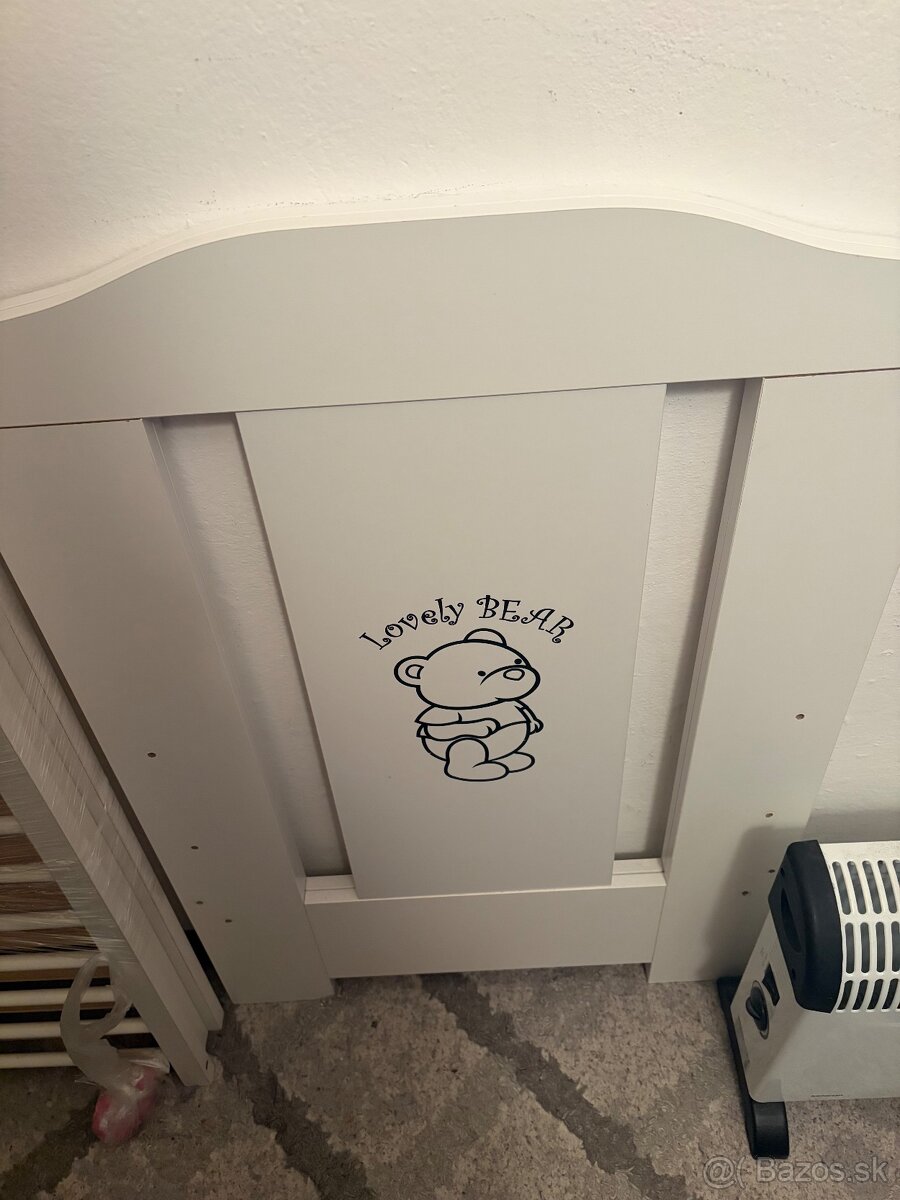 Predám detskú drevenú postieľku s motívom macka „Lovely Bear“.