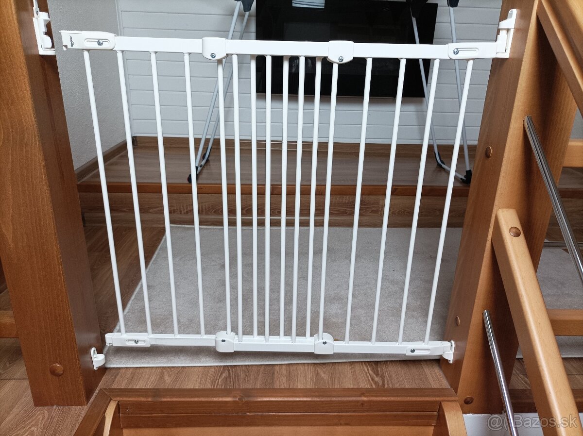 Predam kovovu detsku zabranu bielej farby Je mozne ju prichytit na dvere schody stenu. Jednoduche ovladanie jednou rukou Vyska zabrany je 71cm nastavitelna sirka od 67 do 105 cm