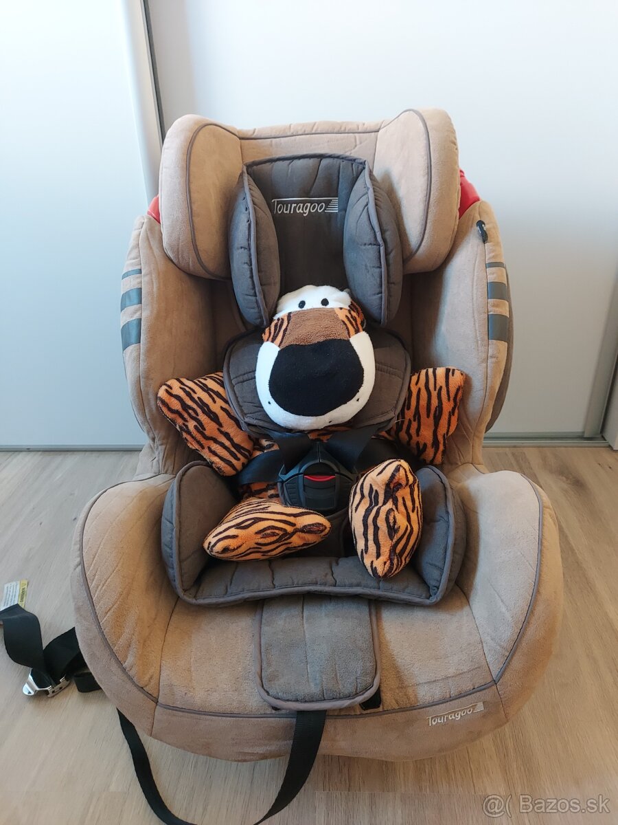 Autosedačka Touragoo pre dieťa od 9 - 36 kg. Bez poškodenia (havárie). Poťah na ľavej strane mierne vyblednutý od slnka, ale na prvý pohľad to ani nie je vidieť.