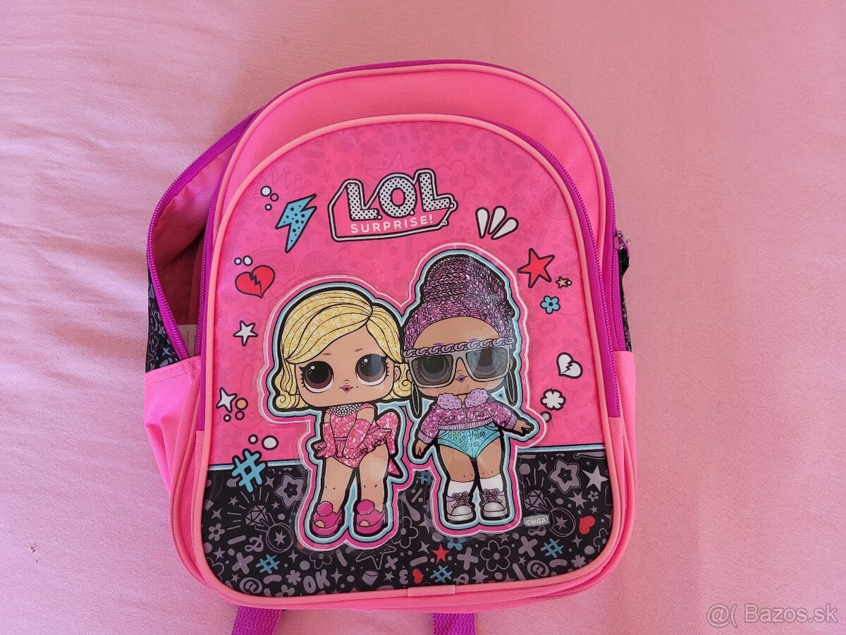 Pedám destký batoh s motívom LOL Surprise. Batoh je v super stave, dcera si v nom maximalne prenasala plysakov. Batôžtek sa skladá z jednej hlavnej kapsy a predné menšie vrecká. 31x25x10cm
