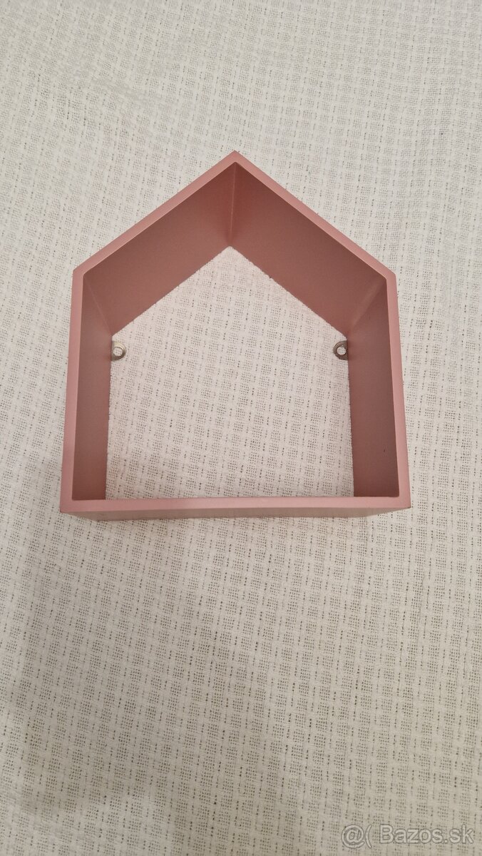 Ružový domček ako závesná polička, ale dá sa aj položiť na iný nábytok ako dekoracia.