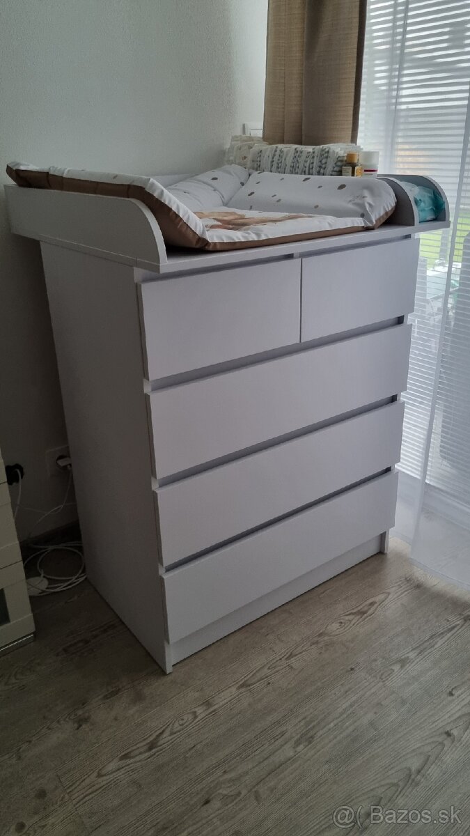 Prebalovacia komoda ikea - [11.1. 2026]Predám prebalovaciu komodu z ikei vo výbornom stave, z boku sú na nej háčiky so zvieratkami, možnosť kúpiť aj s prebalovaciu podložkou za 165 €