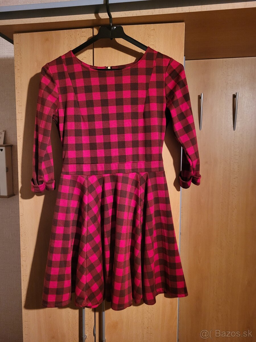 Predám kockované červeno-čierne šaty, veľ 152, žiadne poškodenie
