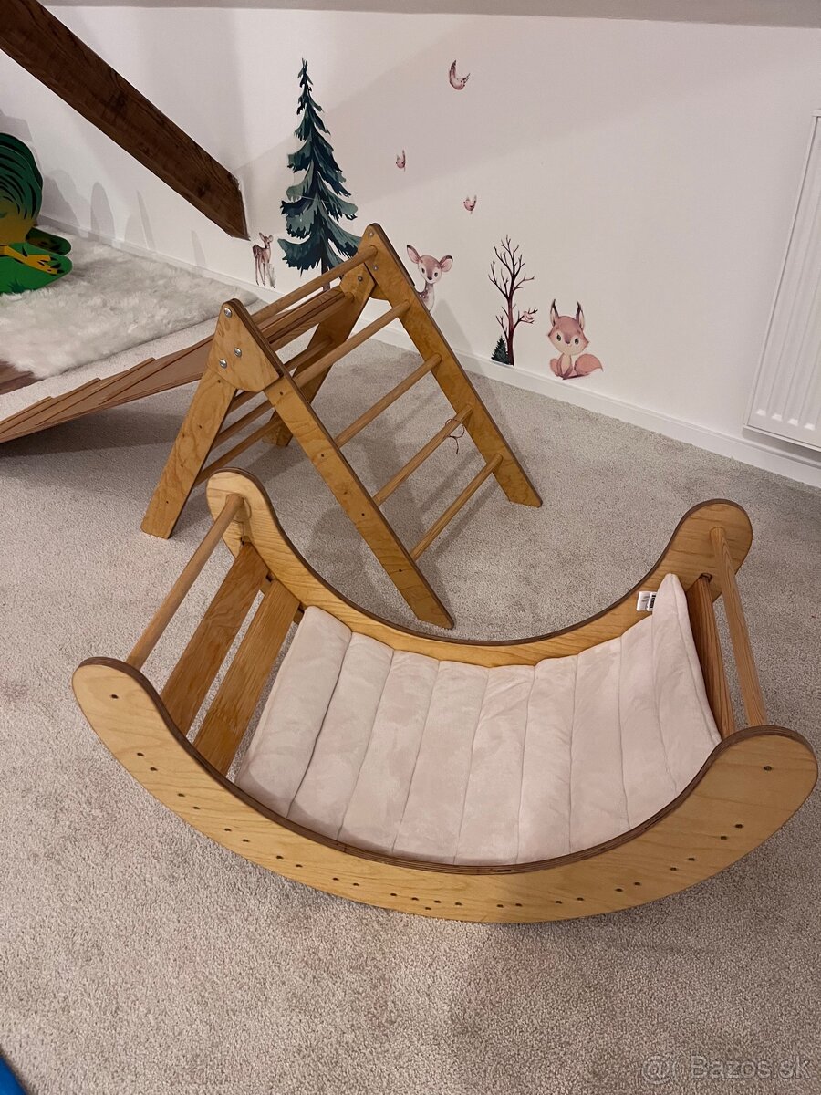 Piklerovej trojuholnik/triangel sada 3 v 1 Woodisio - TOP - [11.2. 2026]Predam pouzivany rok a pol po jednom dietatku, trojuholnik, kazda strana je funkcna (lezecka stena, rebrina, lano)