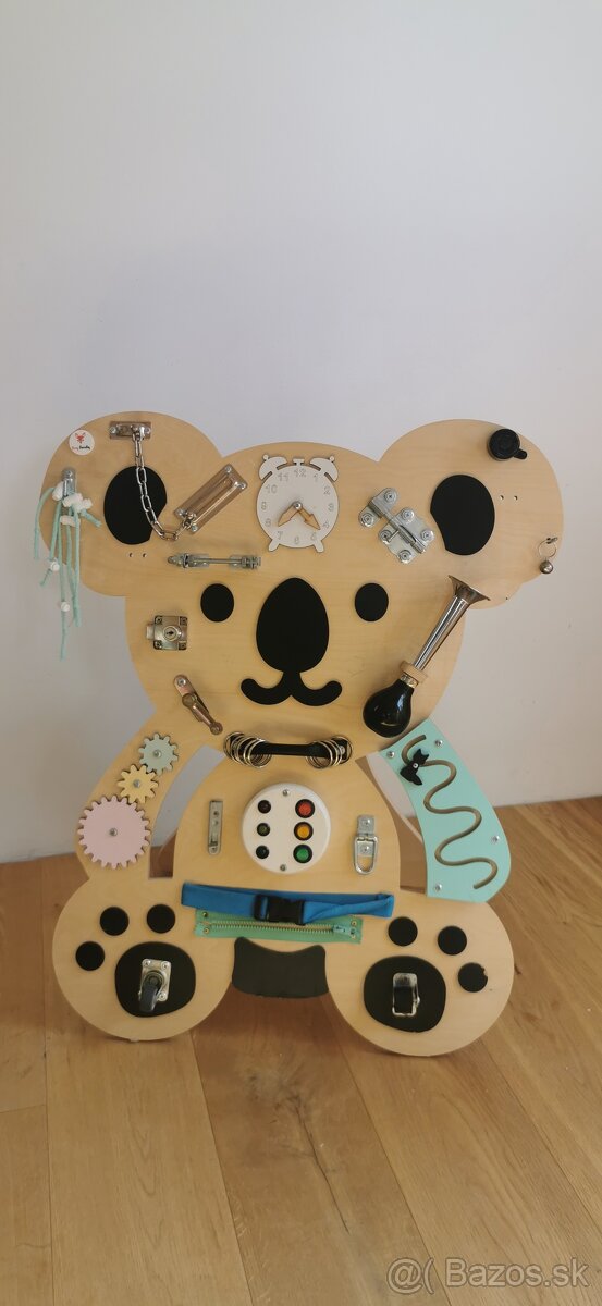 Predám activity board - manipulačnú dosku Koala - pre dieťa. Hračka je z dreva. Doska sa dá oprieť o stojan alebo zavesiť na stenu. Rozmery 75x62 cm.