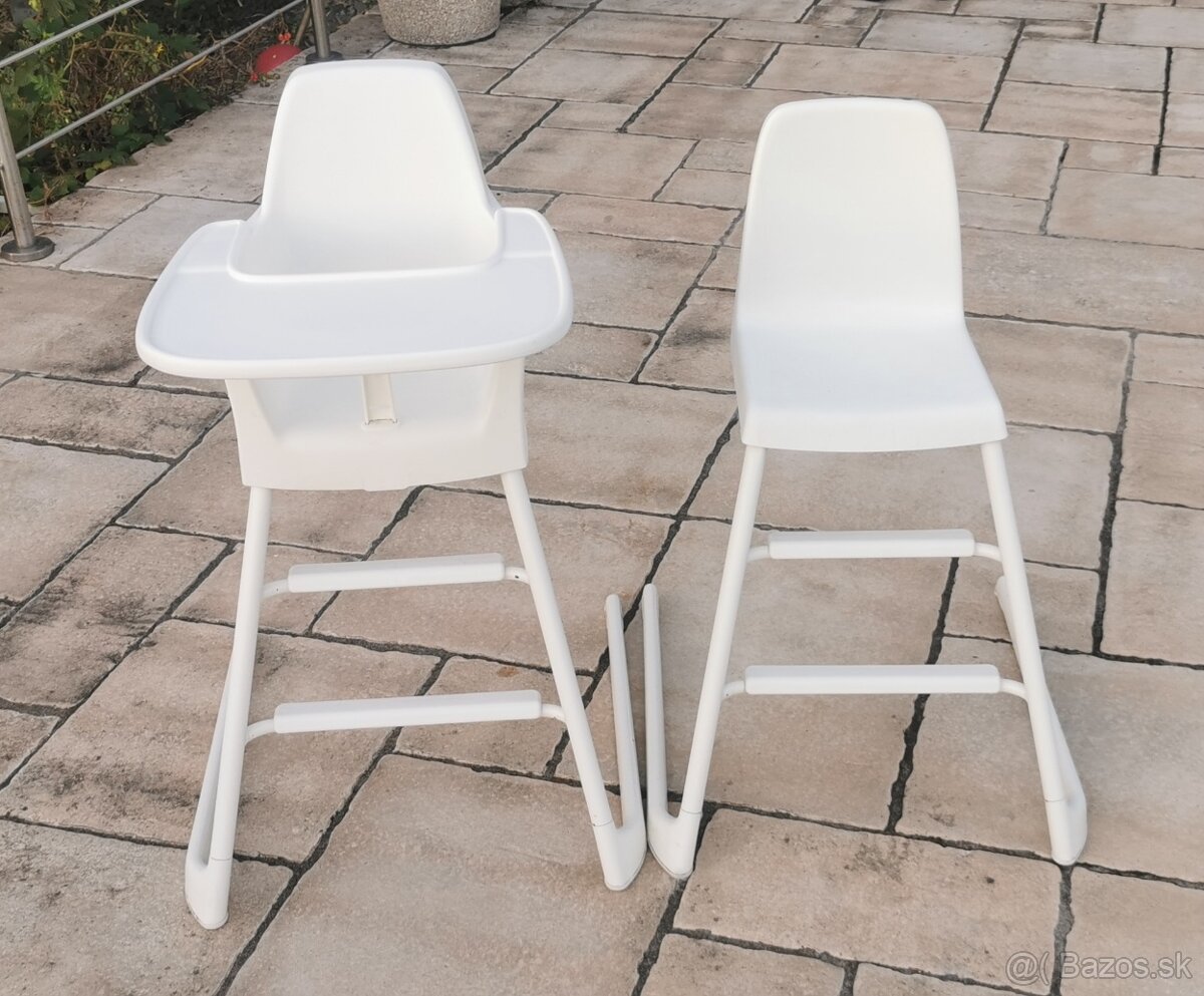 Predám kvalitnú, stabilnú jedálenskú stoličku. K dispozícii sú dva kusy, možný odber samostatne aj spolu, ak máte súrodencov. Stolička bez podnosu pre staršie dieťa v cene 50 Eur, stolička s podnosom pre mladšie dieťa v cene 75 EUR. Podnos je odnímateľný.