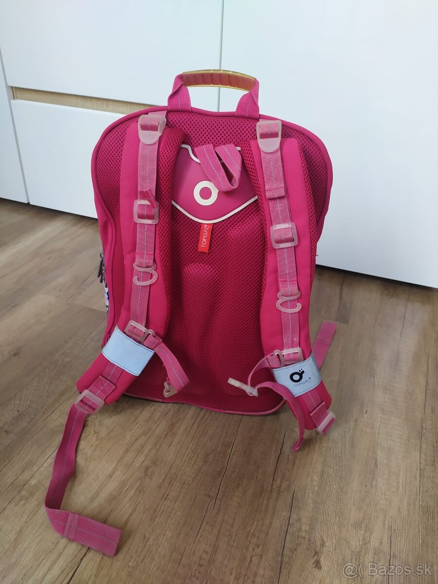 Školská taška Levlik - [9.2. 2026]Predám školskú tašku značky Levlik cyklamenovej farby s jednorožcom. Taška je odľahčená vaha do 1 kg.Aktovka je samostatne stojaca z nepremokavého materiálu s reflexnymi prvkami. Chrbtová časť je anatomicky tvarovaná. Nastaviteľné popruhy. Pôvodne cena 70 eur. Na spodnej časti je prasknuta, preto c ...