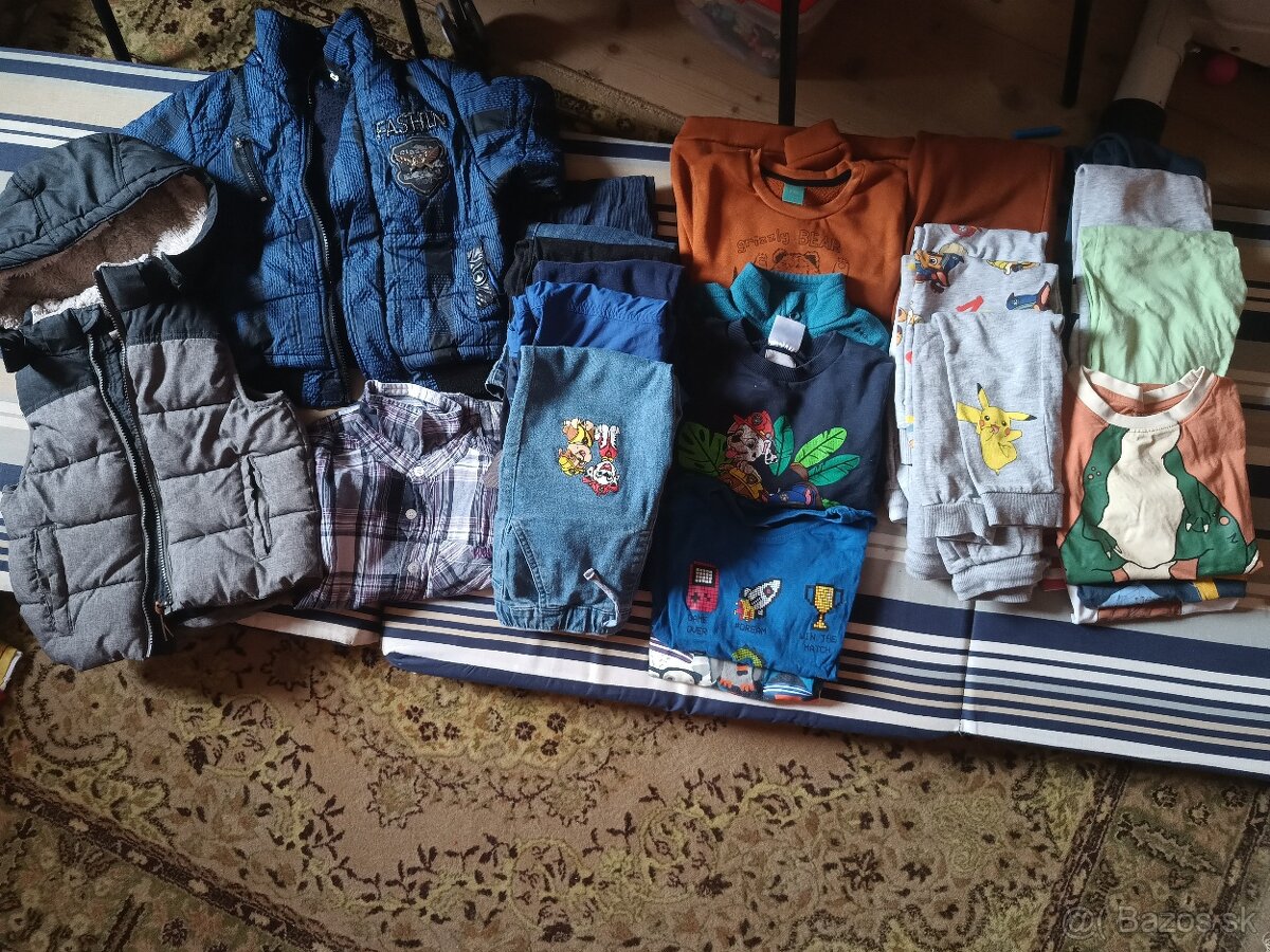 Balík 110 obsahuje zimnú bundu, vestu, komplet tepláky+bundička, bundičku, pulóvre, tričká s dlhým rukávom, košeľu, rifle, tepláčiky a posledný rad tepláky+ tričká darujem k balíku