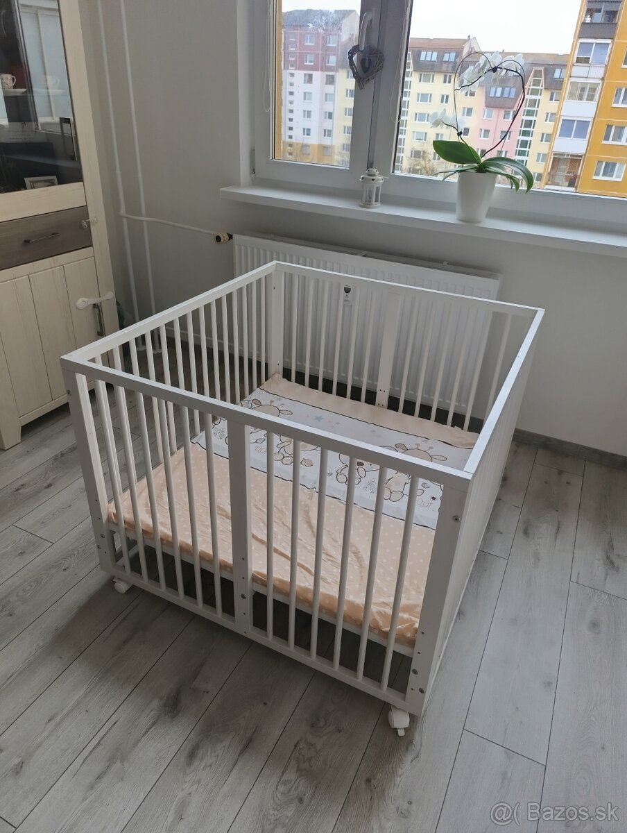 Predám drevenú detskú ohradku na kolieskach (môže slúžiť aj ako postieľka).