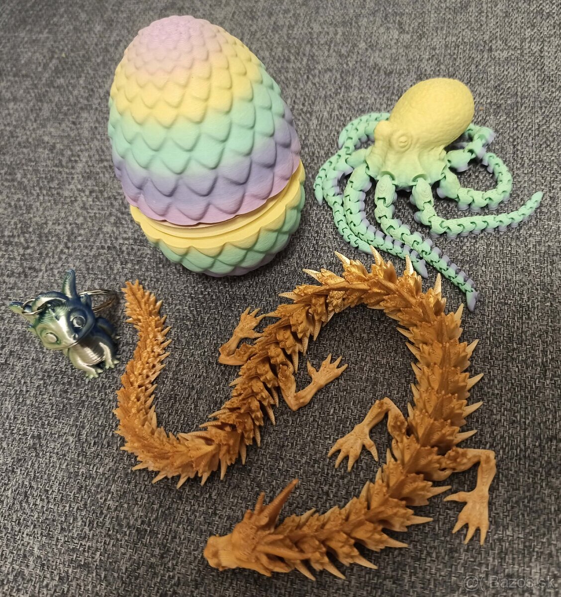 3D hračky pre malých milovníkov drakov a iných príšeriek....Chobotnica vo vajíčku v noci svieti,drak a malý dráčik prívesok na klúče.Všetko nový tovar