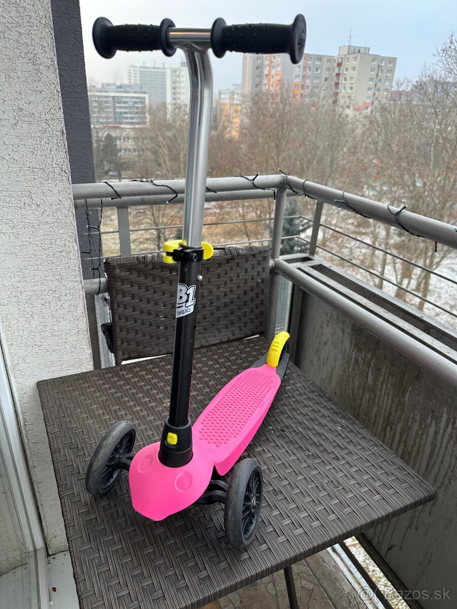 Predám 3 kolieskovu kolobežku oxelo, pre deti od 80 cm do 115cm . Nemá žiadne chyby. Ma 3 stupne nastavenia výšky riadidiel a táto tyč sa dá odmontovať.