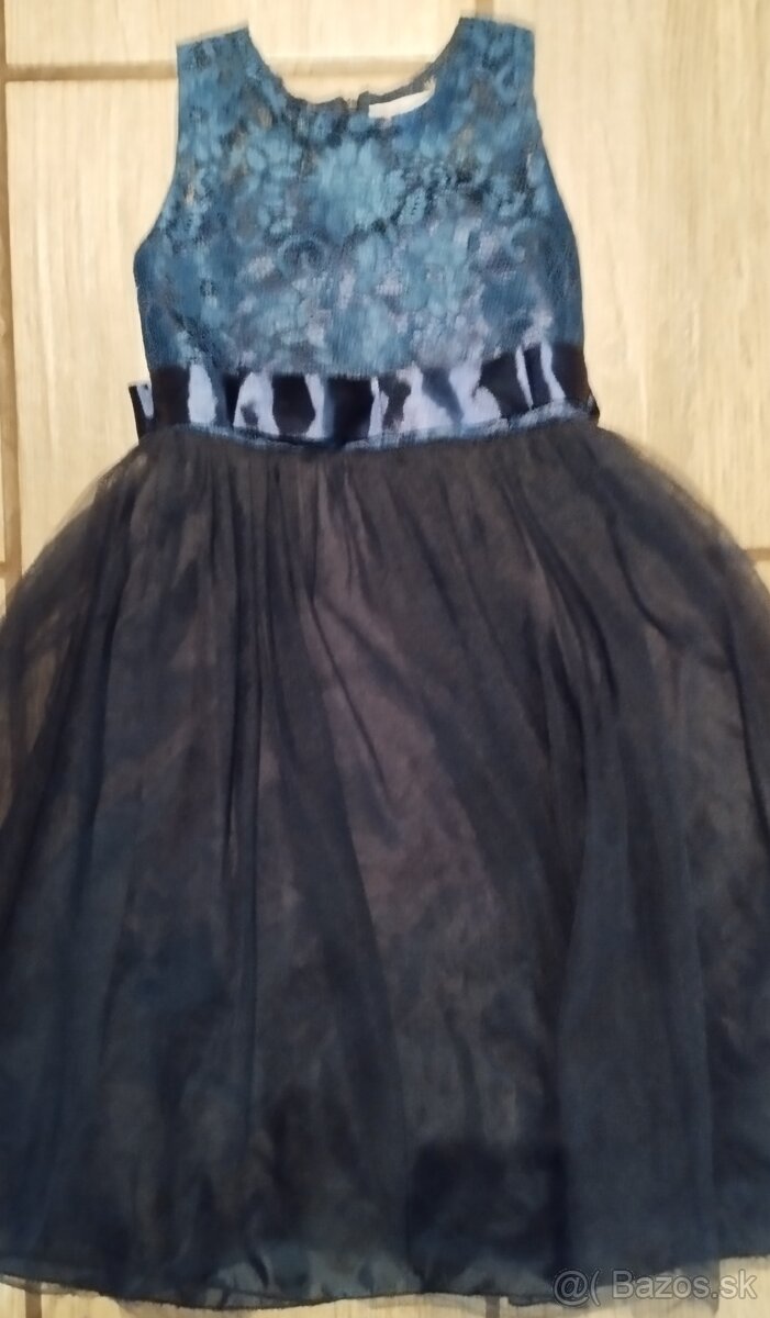 Predám dievčenské slávnostné šaty tmavomodrej farby, raz oblečené. Na visačke je veľkosť 120.