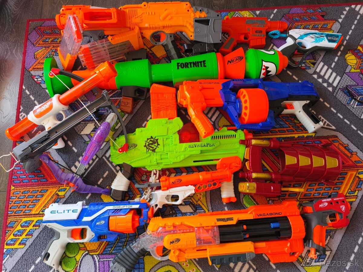 Predám zbierku pištolí Zn.Nerf vrátane nábojov,ochranných okuliarov a vesty.