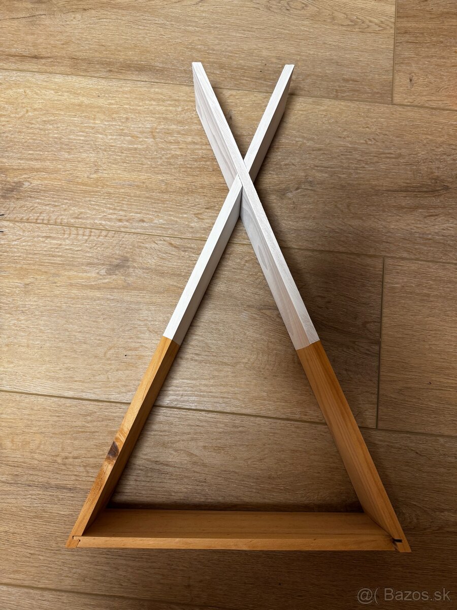 Predám drevenú poličku v tvare trojuholníka. Rozmery na obrázkoch. Farba čierna, biela a sivá