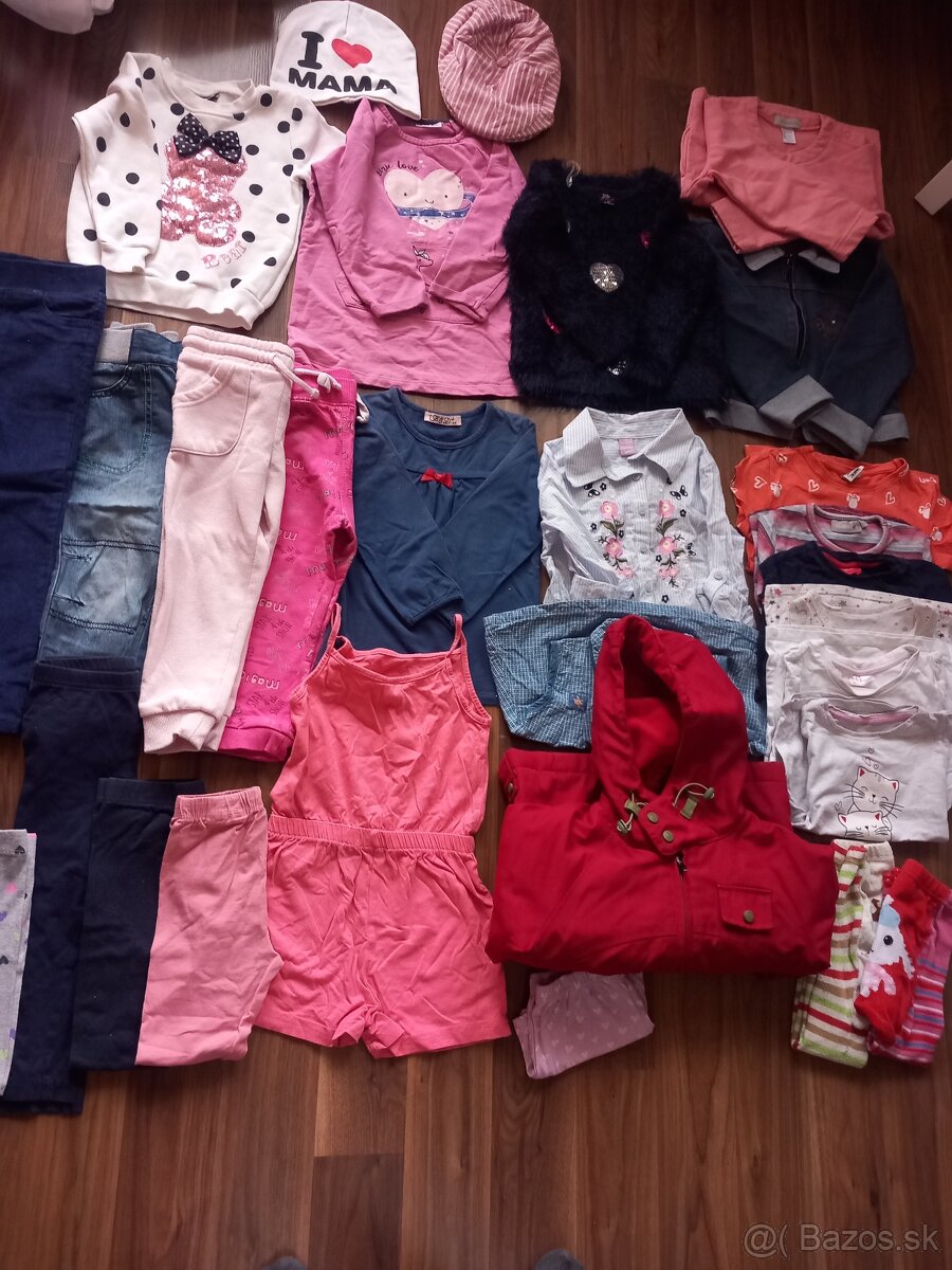 Predám veľký balík oblečenia v.92-110. Prechodná zateplená bunda,riflova bunda,4 ks svetre,2čiapky,2nohavice,2tepláky,4ks legíny,košele ,pančuchy,tričká. Spolu 30ks oblečenia .Cena 35 €