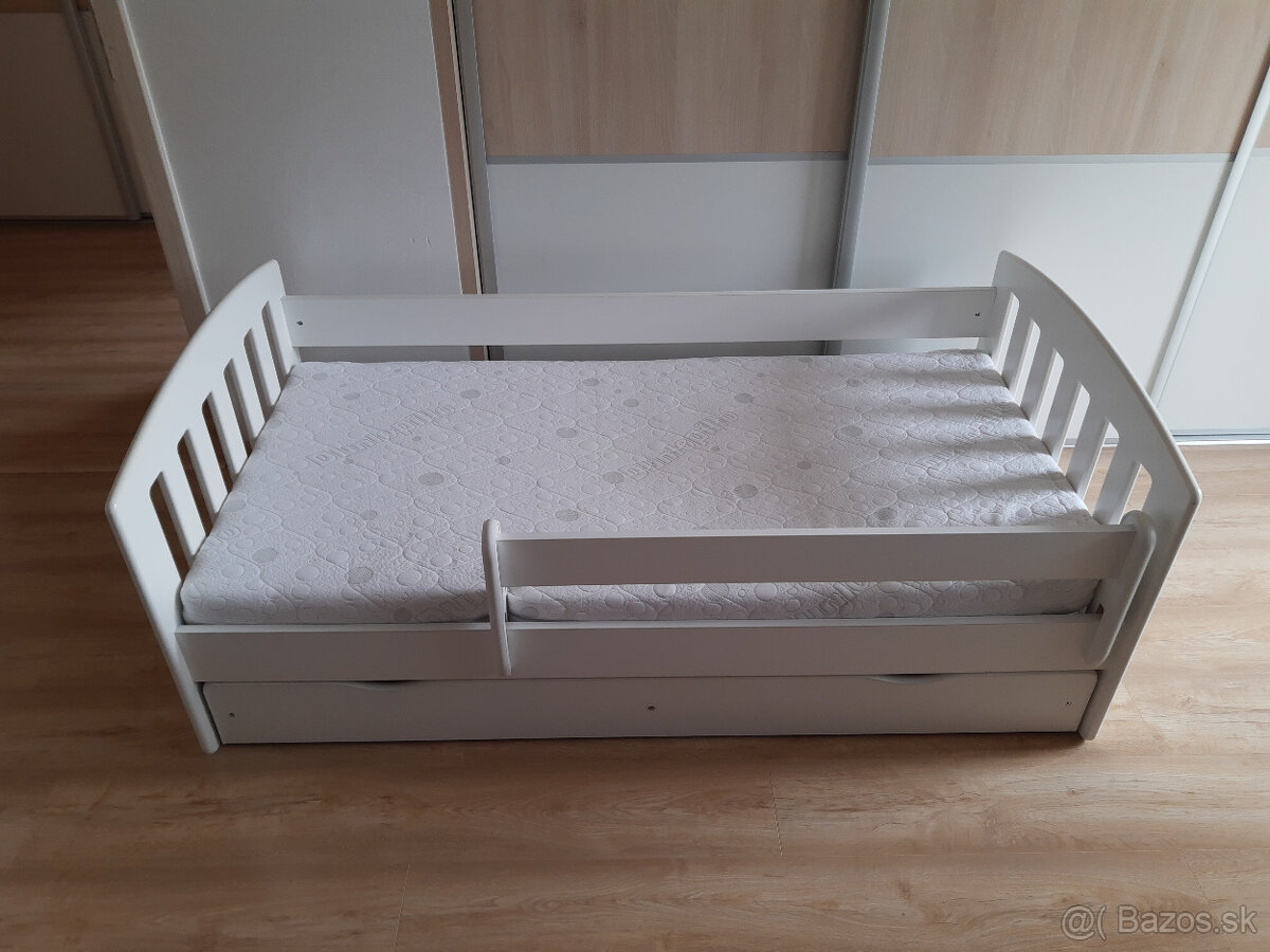 Detská posteľ 140x70 - [12.2. 2026]Predám zachovalú detskú posteľ s novym matracom,so zábranou a úložným šuflikom