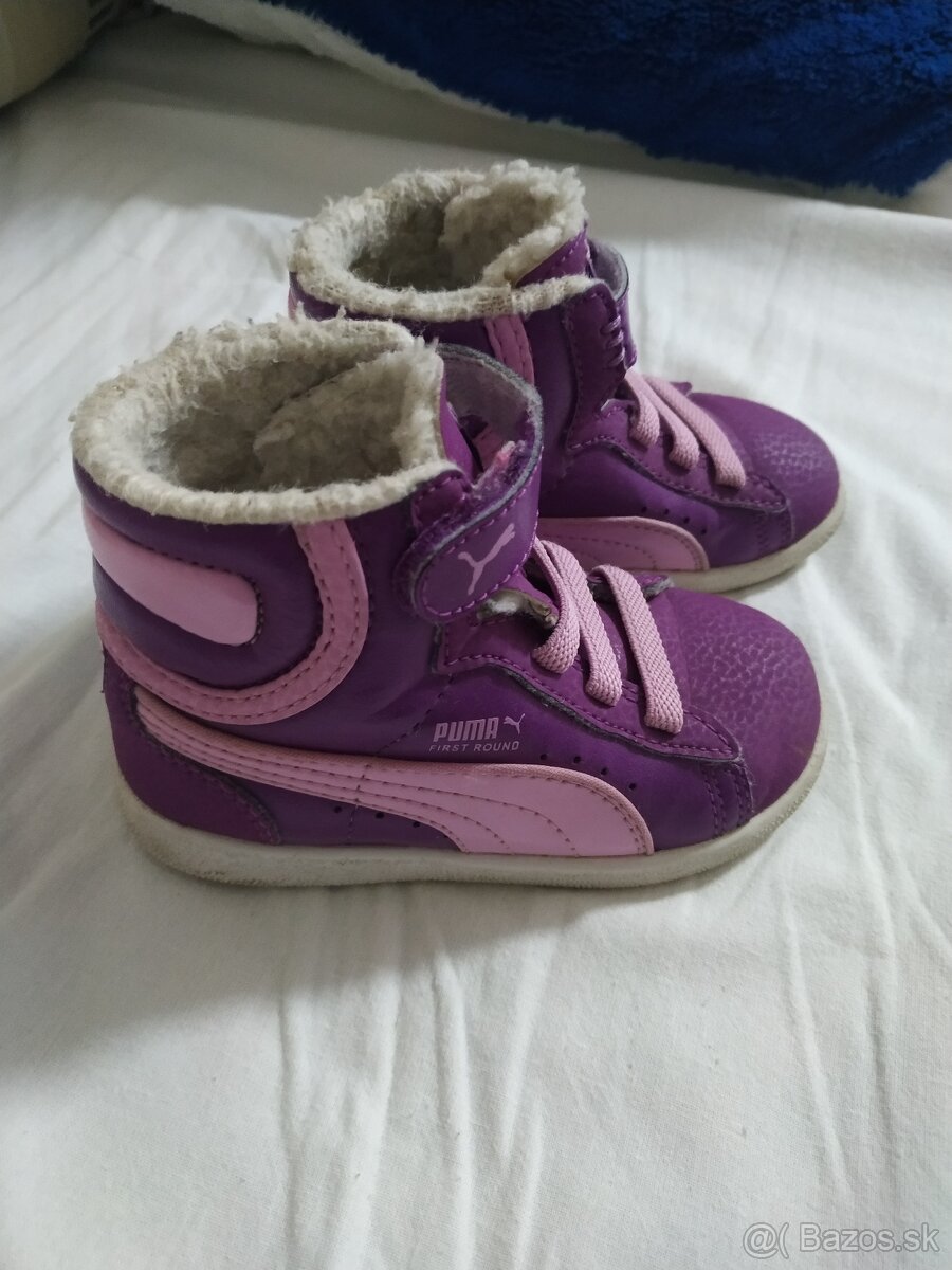 Pekne fialovo ruzove zateplene topanocky do tohto pocasia kym velmi nemrzne. Nosene ale este posluzia. Spicky neoskrete, nezni cene. Lepaky drzia Dlzka vlozky na foto. Vhodne na nozku do 13 cm.