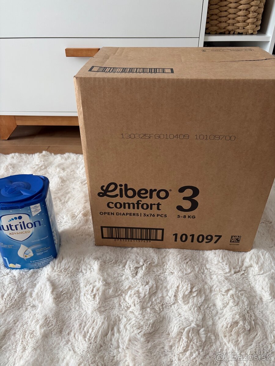 Dobrý deň, predám plienky značky Liberto 3 5-8kg 228ks a dojčenské mliečko. Všetko je nové neotvoré