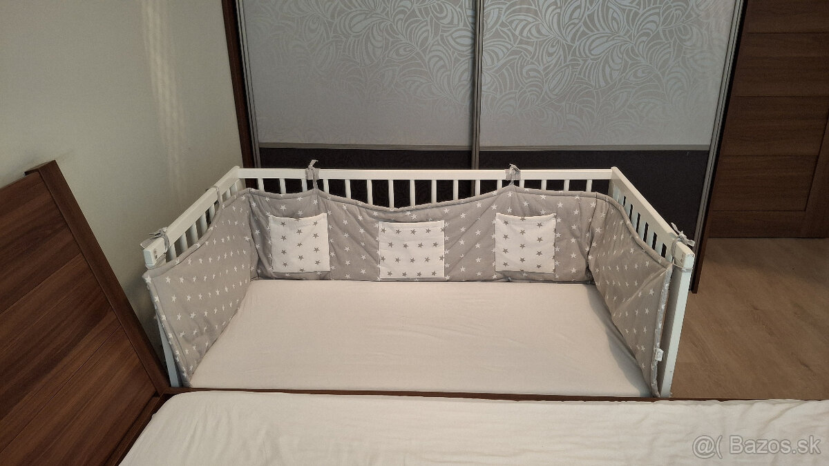 Predám použitú detskú postieľku IKEA aj s matracom a dvoma plachtami. K dispozícii je aj neosadená bočnica. V cene je aj na mieru ušitá bočná obruba s odkladacími vreckami. Na matraci sa nachádzajú škvrny.