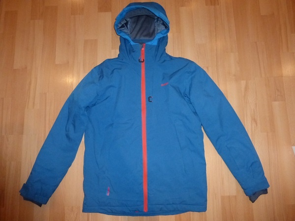 nemá poškodenia, iba sem-tam fliačiky od pomy, veľkosť 164/170. Vodný stĺpec 15000, spodok sa dá utiahnuť, rukáve na suchý zips, kapuca napevno, vnútri lyžiarsky pás. Dĺžka 70cm, šírka 53cm, rukáv 61 + 15cm rameno.