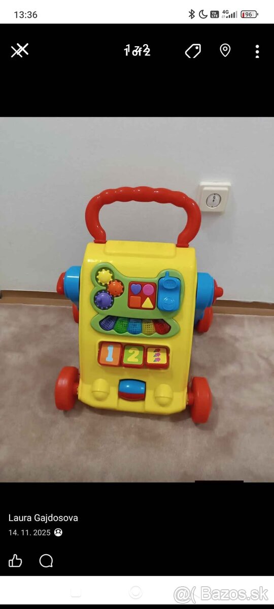 Drevené Chodítko - [23.2. 2026]Mám k dispozícií drevené chodítko s rôznymi senzorickými hrami. Chodítko je v stave po dvoch deťoch. Obidvom pomohlo pri učení sa chodiť.