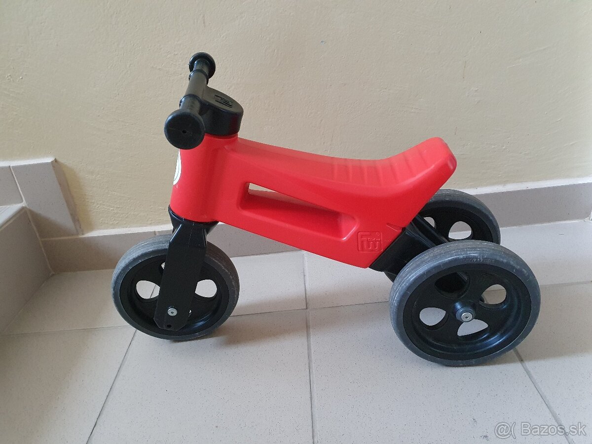FUNNY WHEELS odrážadlo rastie s vašim dieťaťom. Výška je nastaviteľná a keď dieťa povyrastie, dá sa jednoducho zodvihnúť o 3 cm vyššie. Ďalšou výhodou odrážadla je, že keď budete chcieť aby sa dieťa začalo učiť rovnováhe jednoducho vymeníte dve zadné kolieska za jedno a dieťa sa tak začne pripravovať na jazdu na bicykli. Odrážadlo je stabilné (vo variante s tromi kolesami). Vidlica má obmedzený rozsah otáčania a riadidlá sa tak nemôžu pretočiť. Rukoväte riadidiel sú na konci rozšírené, a tým chránia detské ruky pred poranením. Odrážadlo je hračka, ktorá baví snáď každé dieťa.