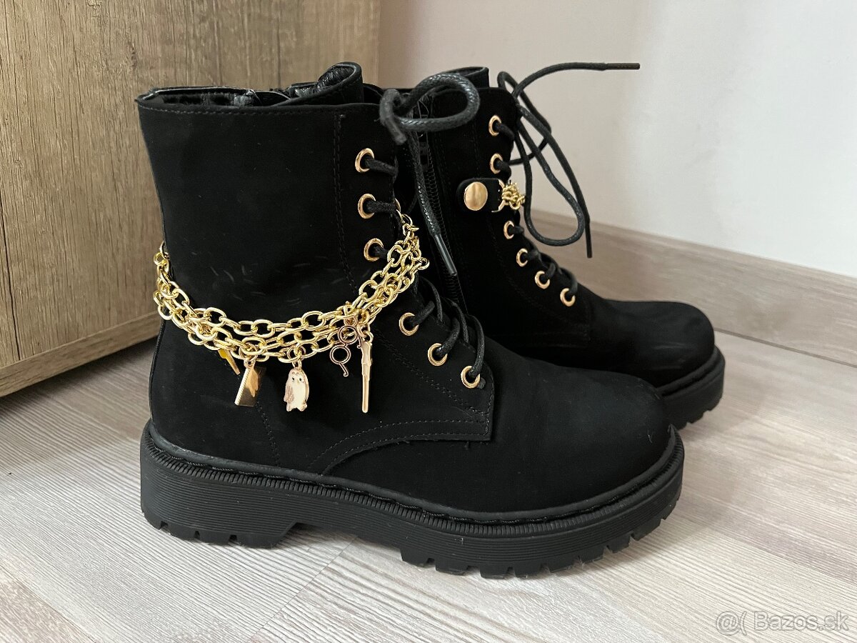Predám krásne dievčenské členkové topánky, veľkosť 34. Na retiazke sú obrázky Harry Potter, retiazka sa dá odopnúť. Topánočky sú vo veľmi dobrom stave, boli nosené veľmi málo. Vnútorná dĺžka je 21,3cm.