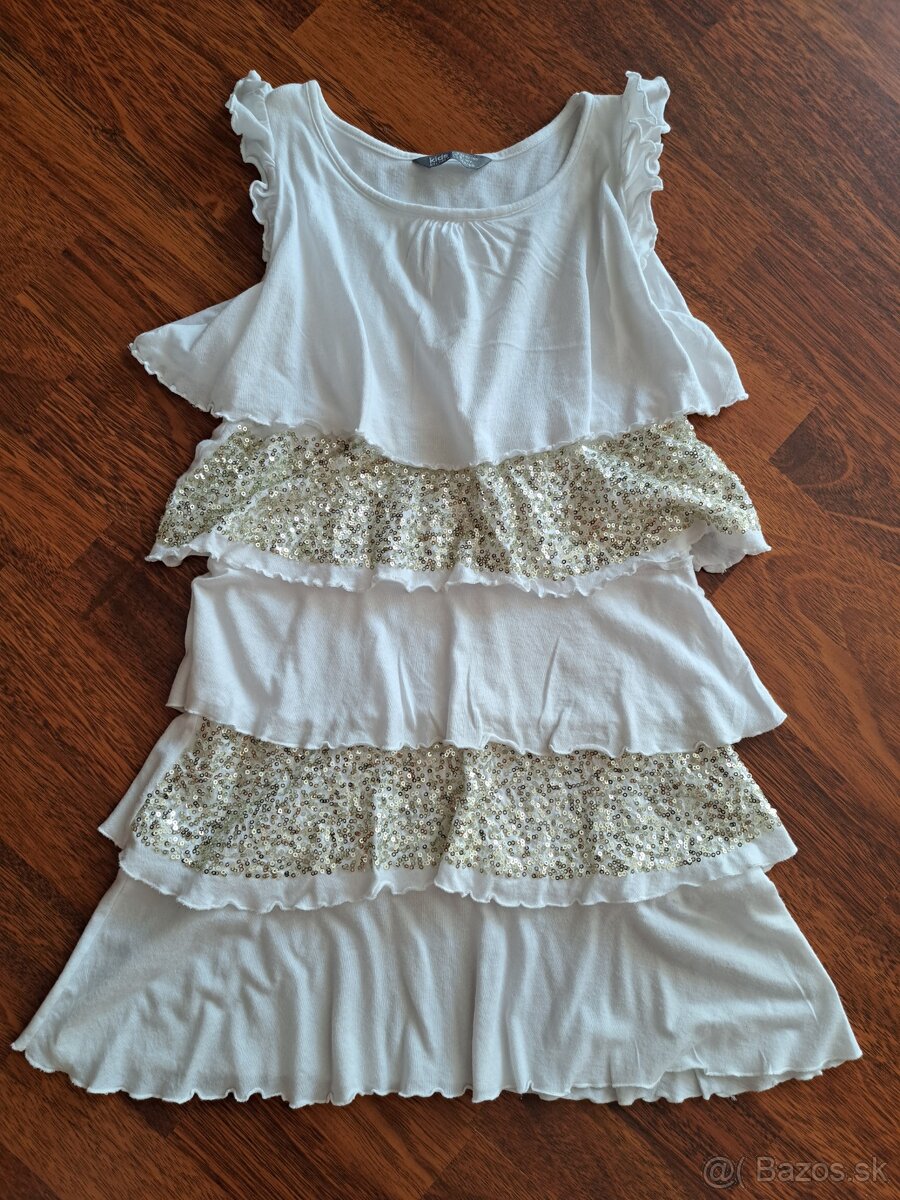 Krásne biele šatočky (aj ako tunika ku legínam) Lindex 134 - so zlatými flitrami