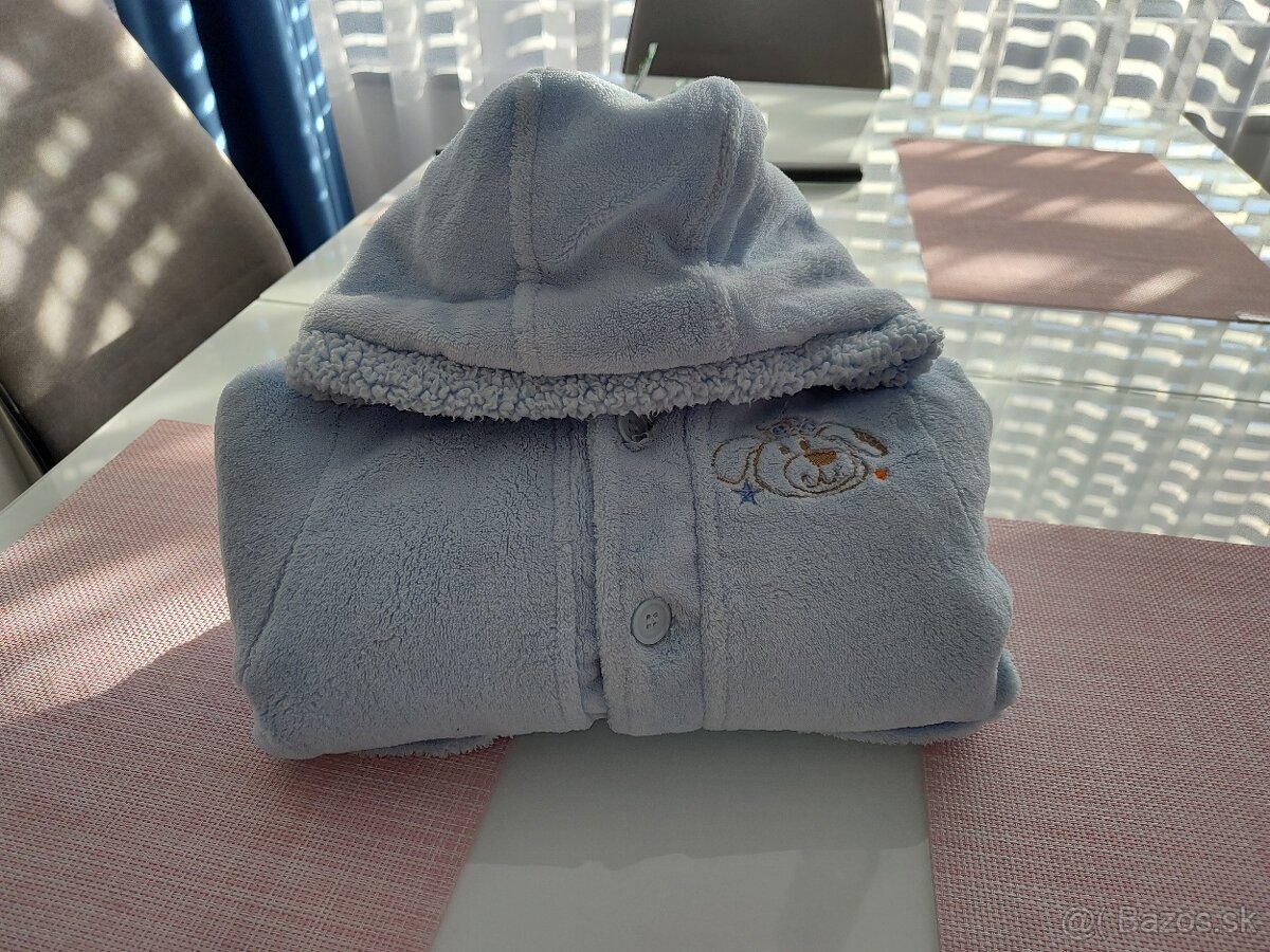 Krásny teplý modrý kabátik. Farba je bledo modrá. Veľkosť 6-9 mesiacov. Značka F&F. Cena 4 €