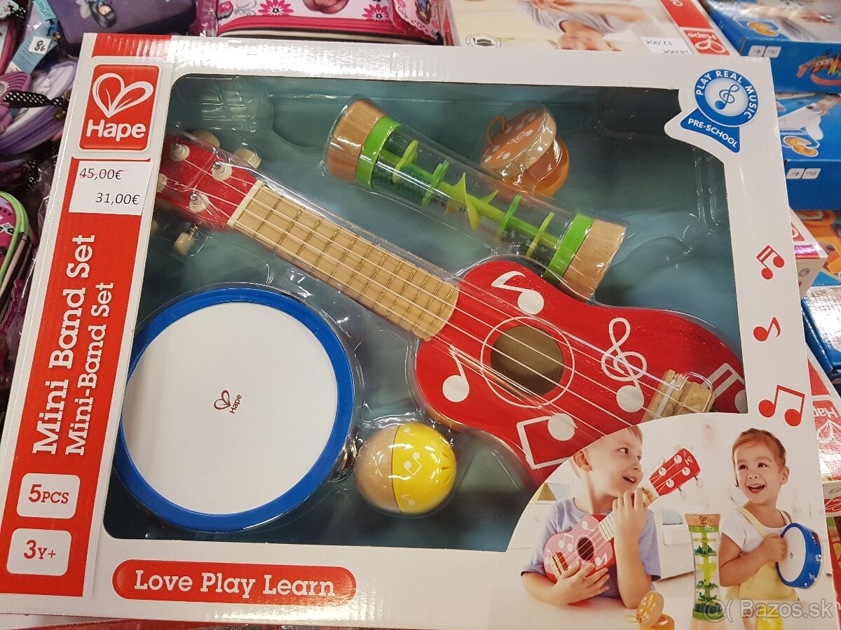 Sada pre hudobníkov-začiatočníkov je určená pre deti od troch rokov. Nájdu v nej ukulele, tamburínu, kastanet, hudobné vajíčko a dažďovú palicu. Dosť na to, aby deti doma vytvorili hotovú kapelu.