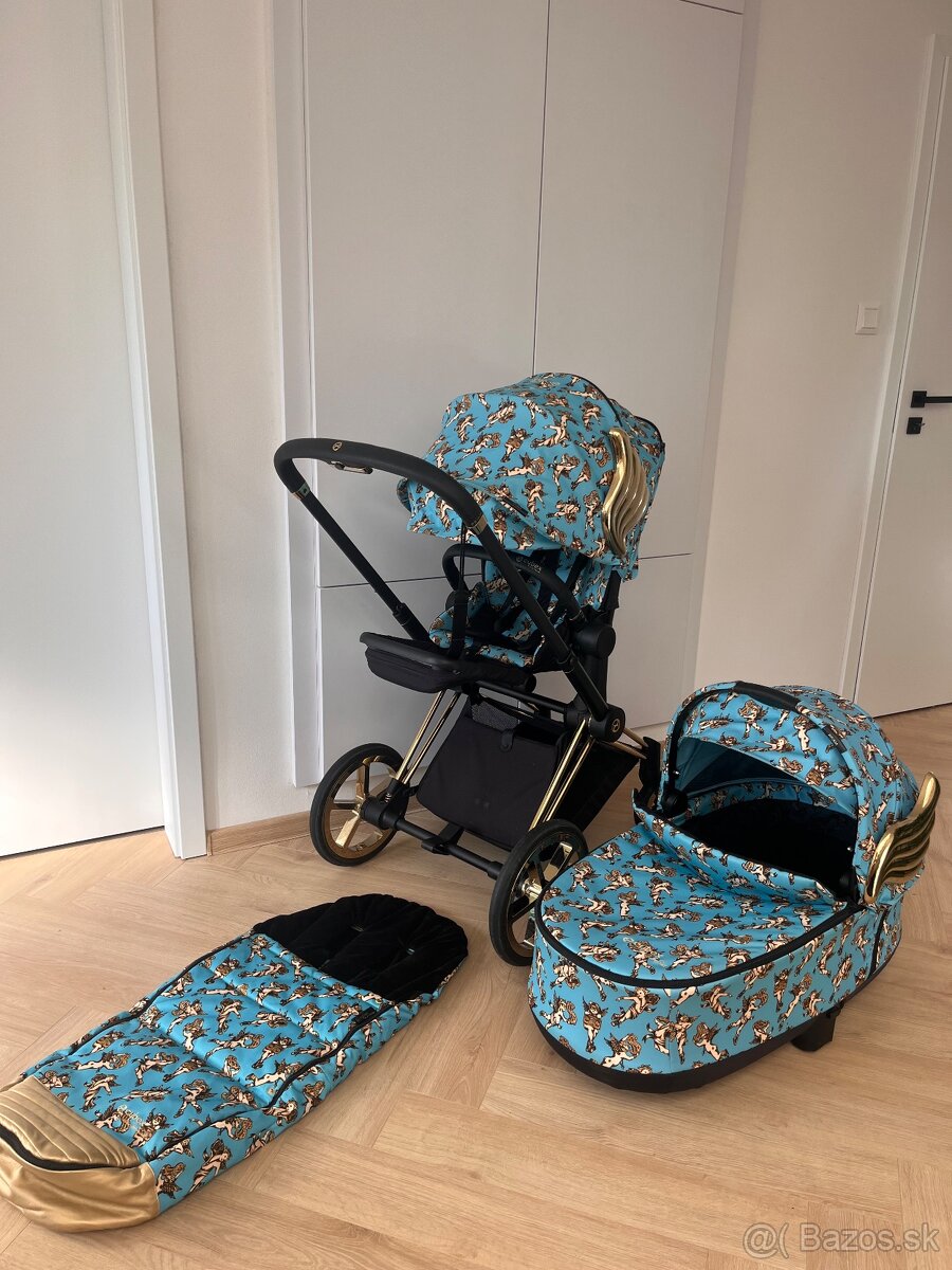 Cybex priam by Jeremy scott 2019 - [8.2. 2026]Predám celú sadu Cybex priam Jeremy Scott od vajíčka, veľkú vaňu až po športovú časť a dva podvozky + všetky doplnky k tomu aj 1 zlaté predné koleso - úplne nové...vajíčko je polohovateľné, taška aj športová časť boli prestriekané, nakoľko vybledli od slnka, zlatý podvozok má škrabance, čierny je v ...