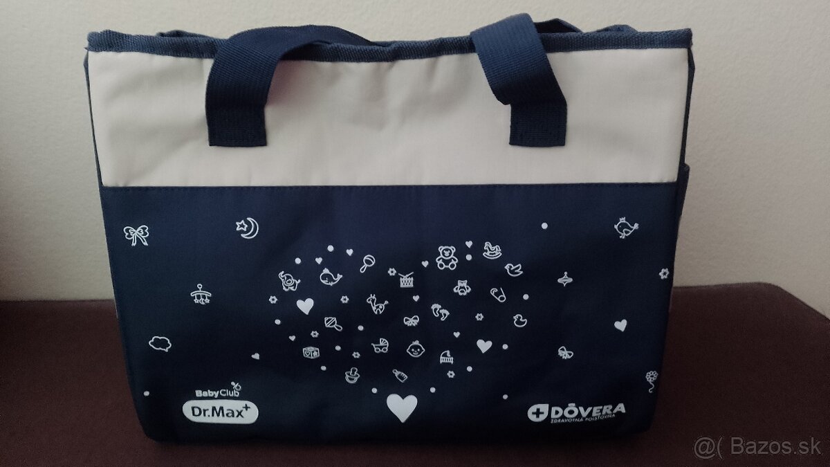 Predam uplne novu tasku na kocik alebo iba tak ako prirucnu tasku s dostatocne volnym priestorom vo vnutri plnu potrebnych priehradiek pre rozne veci pre babatko, s priehradkami aj po bokoch. Je k nemu aj remienok na pripadne zavesenie na rameno.