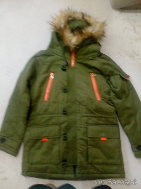 Predám novú detskú zimnú bundu, tmavozelenej farby, kapucňa na zips, zapínanie na zips a gombíky, v páse možnosť stiahnutia šnúrkou, kapsy na zips a cvoky, podsivka, veľkosť M, dĺžka 73 cm, šírka 50 cm, rukáv 65 cm. Cena 30,-€ + poštovné. Možná dohoda.