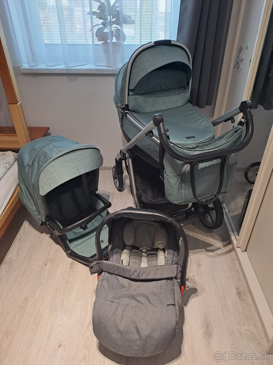 Predám kočík značky Espiro Next po dvoch deťoch. Kočík má veľmi dobrú výbavu ako sú pláštenky do dažďa,fusak, držiak na fľašu, tašku ku kočíku. Hlboká vanička obsahuje tiež matrac. Má rôzne vetracie otvori a tiež sklopenie striešky. Vajíčko obsahuje novorodeneckú podložku,pláštenku do dažďa, vrchný kryt a adaptéry na konštrukciu. Vajíčková konštrukcia obsahuje škrabance po používaní. Športová časť je používaná len pri jednom dieťati,no má jednu vadu a to ošúchanú koženku na vyložení nožičkami. Drobné chybičky sa nájdu.