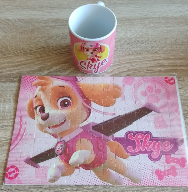 Predam puzzle + hrncek Skye Paw Patrol, hrncek 330ml, puzzle nema lakovanu upravu povrchu, vsetko nove nepouzivane, osobny odber Presov, v pripade dobierky +4€