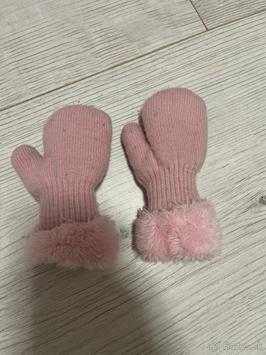Predám zateplené ružové rukavičky, veľkosť cca 6 mesiacov.