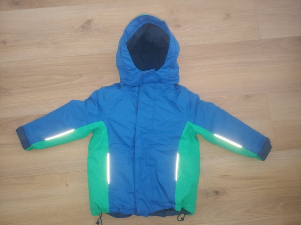 Zimná chlapčenská bunda po jednom dieťati Veľkosť 86/92. Bunda je bez poškodenia, s reflexnými prvkami. Možnosť stiahnuť zospodu po oboch stranách, aby nepodfúklo, na rukách možnosť upraviť dĺžku suchým zipsom.