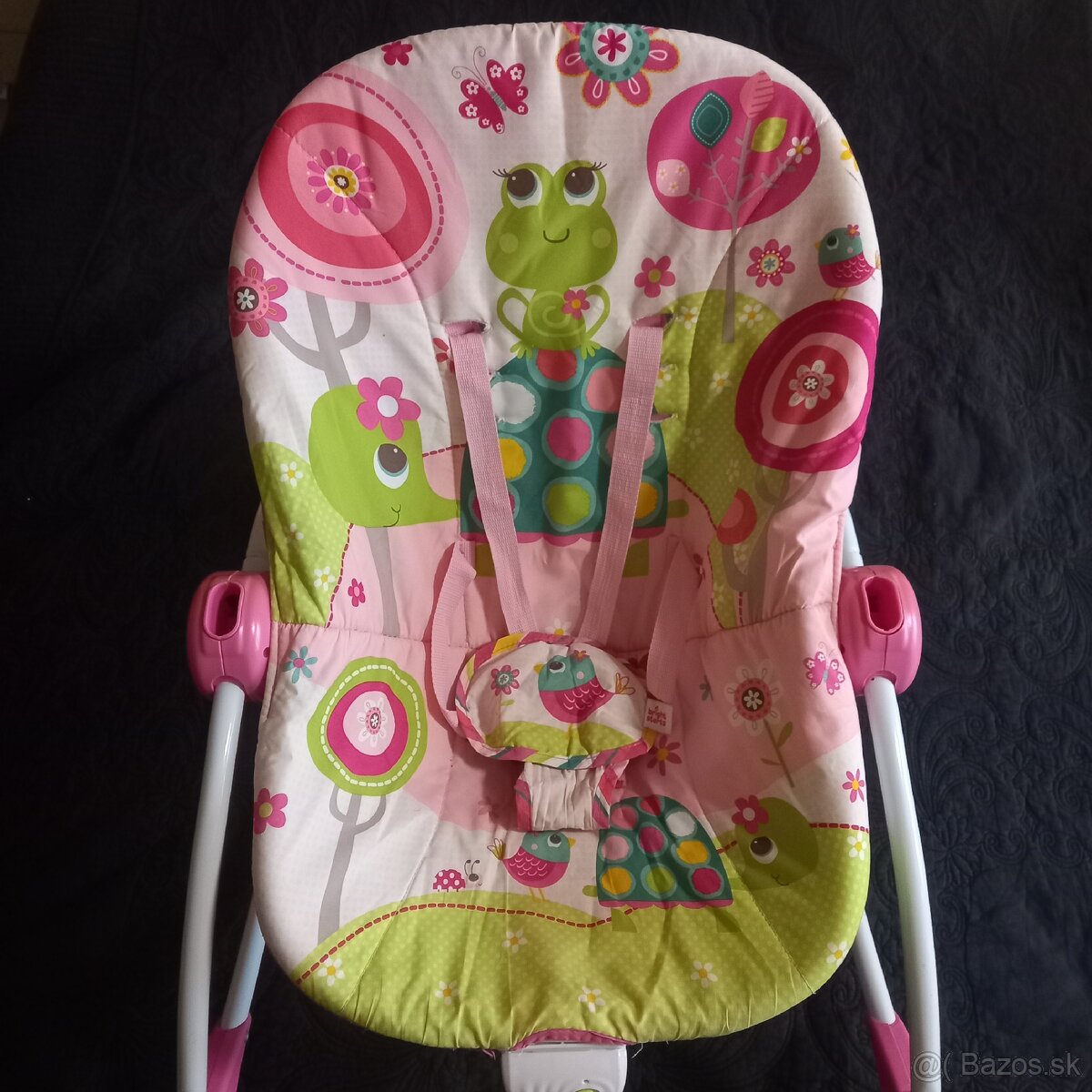Detské hojdacie kresielko pre dievčatko s vibračným motorčekom v super stave. Darujem k nemu hrazdičku s podložkou.