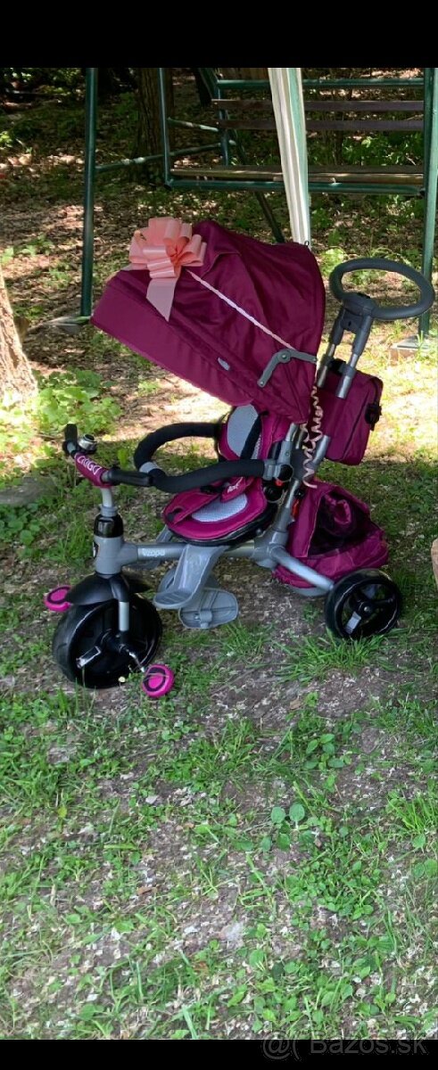 Vhodná pre deti od 12 do 36 mesiacov - maximálny komfort a bezpečnosť pre dieťa - trojkolku riadi a ovláda dospelá osoba pomocou riadiacej tyče, kým sa dieťatko nenaučí na nej jazdiť samostatne - strieška chráni dieťatko pred slnkom, do košíka sa zmestia všetky užitočné drobnosti - operadlo s vankúšikom a pásmi sú zárukou pohodlia a bezpečnosti - trojkolka sa dá veľmi jednoducho zložiť do minimálnych rozmerov - penové kolesá