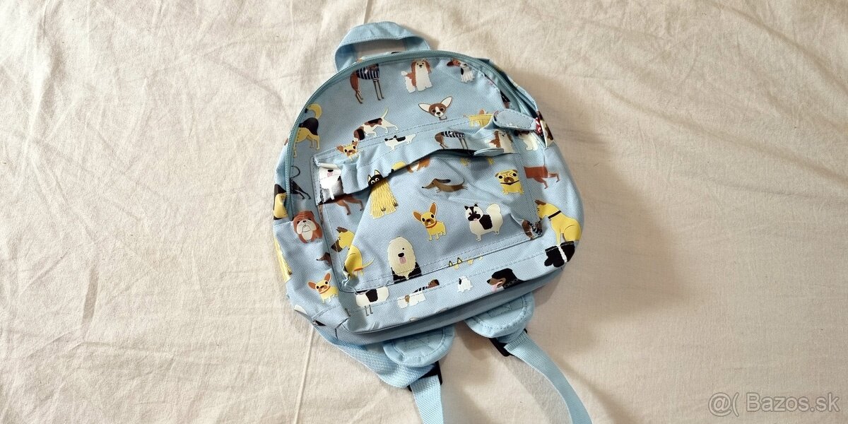 Predám úplne nový malý detský batoh s motívmi psíkov, sv. modrá farba, značka Rex London.
